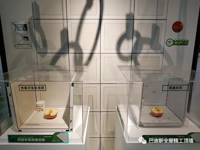 ▲負離子應用之蘋果保鮮實驗,讓觀展者更直觀地看到負離子生態吊頂的功能